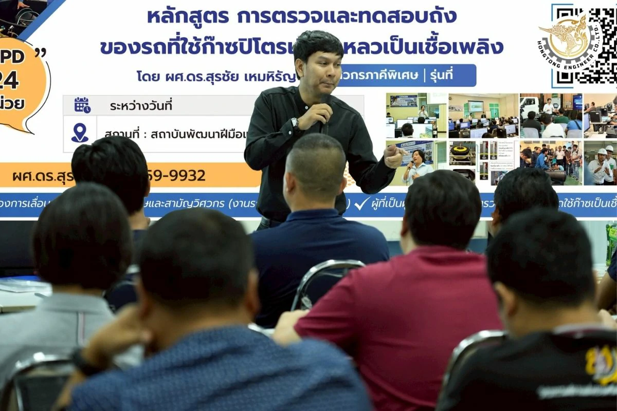 โครงการอบรมหลักสูตร “การตรวจและทดสอบถังของรถใช้ก๊าซปิโตรเลียมเหลวเป็นเชื้อเพลิง” (ภาคีวิศวกรพิเศษ) รุ่นที่ 8 นับเป็นอีกครั้งกับการฝึกอบรมสุดเข้มข้นที่ หงษ์ทอง เอ็นจิเนียร์ ได้ร่วมกับ สถาบันพัฒนาฝีมือแรงงาน 2 สุพรรณบุรี จัดขึ้นเมื่อวันที่ วันที่ 10-12 พฤศจิกายน 2568 ที่ผ่านมา โดยได้รับเกียรติจาก นายนพดล น้อยอุทัย ผู้อำนวยการสถาบันพัฒนาฝีมือแรงงาน 2 สุพรรณบุรี เป็นประธานกล่าวเปิดงาน